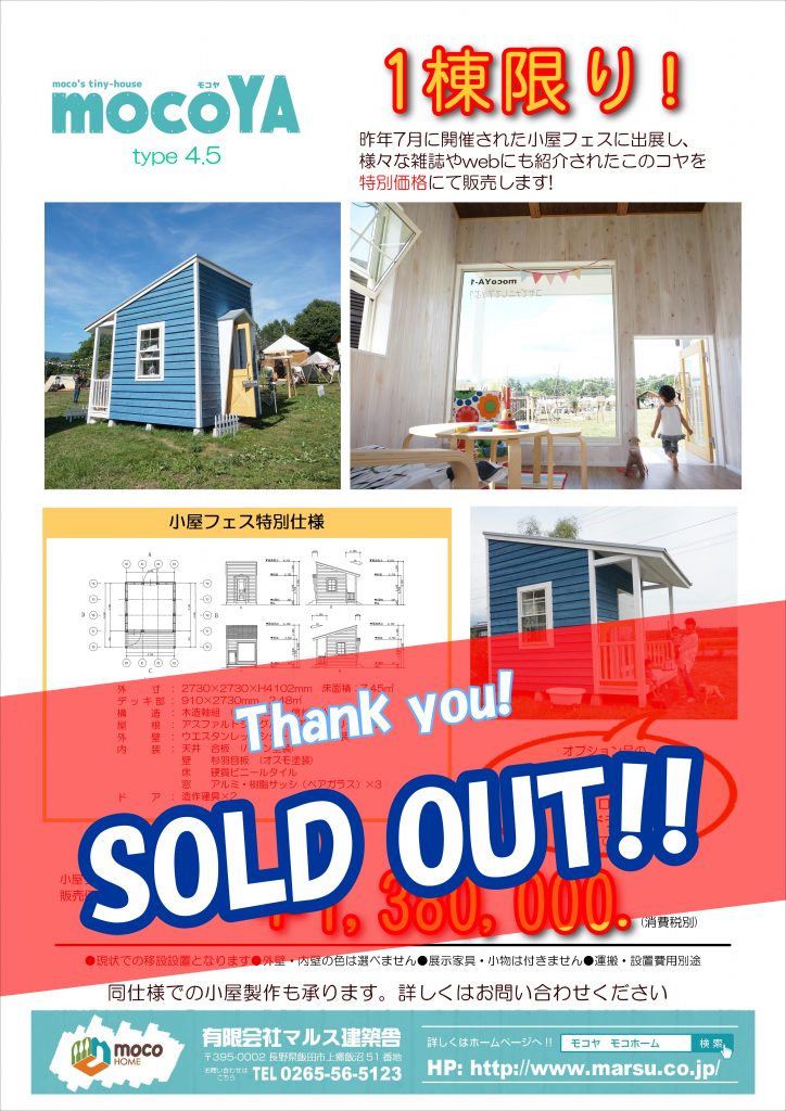 お知らせしてしておりました、mocoYA4.5小屋フェス仕様の青小屋はSOLDOUT致しました。